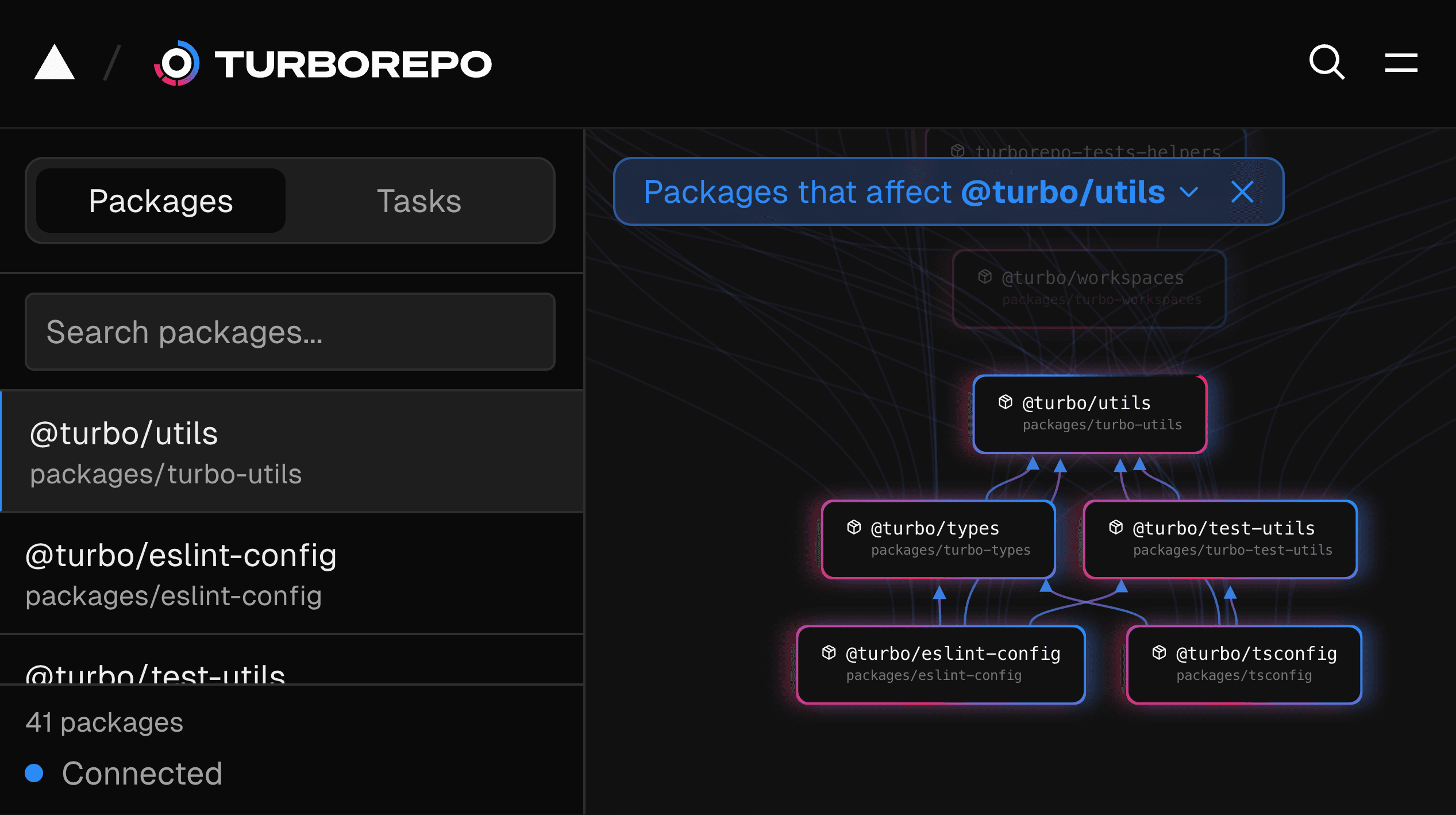 We’ve shipped a brand new experience at turborepo.com/devtools. Starting with this version of Turborepo, you can run turbo devtools to visually explore your Package Graph and Task Graph.